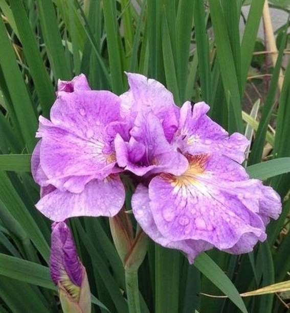 Главная особенность ириса Pink Parfait — его красивая махровая форма. Цветок состоит из нескольких рядов волнистых лепестков нежного розово-сиреневого оттенка. В центре — контрастная ярко-оранжевая бородка, добавляющая цветку выразительности и тепла. Цветоносы крепкие, высотой 70-80 см, и каждый несёт по несколько таких нарядных бутонов. Цветение приходится на конец мая – июнь.