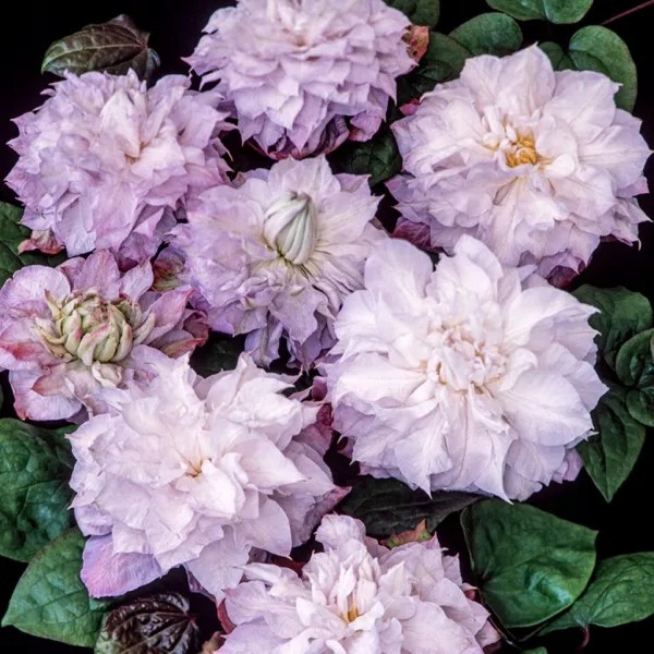 Краткий обзор: Изысканный полумахровый сорт с нежными кремово-белыми цветами, украшенными волнистыми лепестками. Элегантный и обильноцветущий клематис для создания светлых романтических акцентов в саду.