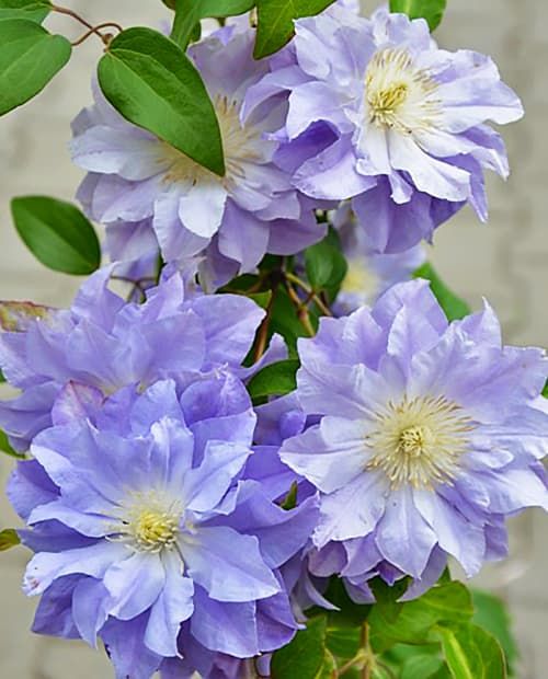 Краткий обзор: Великолепный махровый сорт с нежно-голубыми цветами, напоминающими воздушные шары. Обильноцветущий и компактный клематис для создания изысканных голубых акцентов в саду.