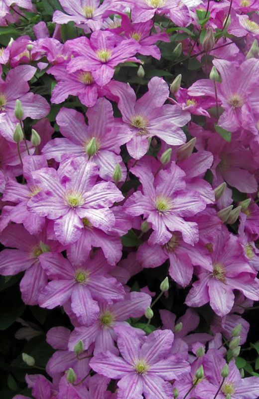 Краткий обзор: Классический и проверенный временем сорт с нежно-розовыми цветами, украшенными кремово-желтыми тычинками. Исключительно выносливый и обильноцветущий клематис для создания романтических акцентов в саду.