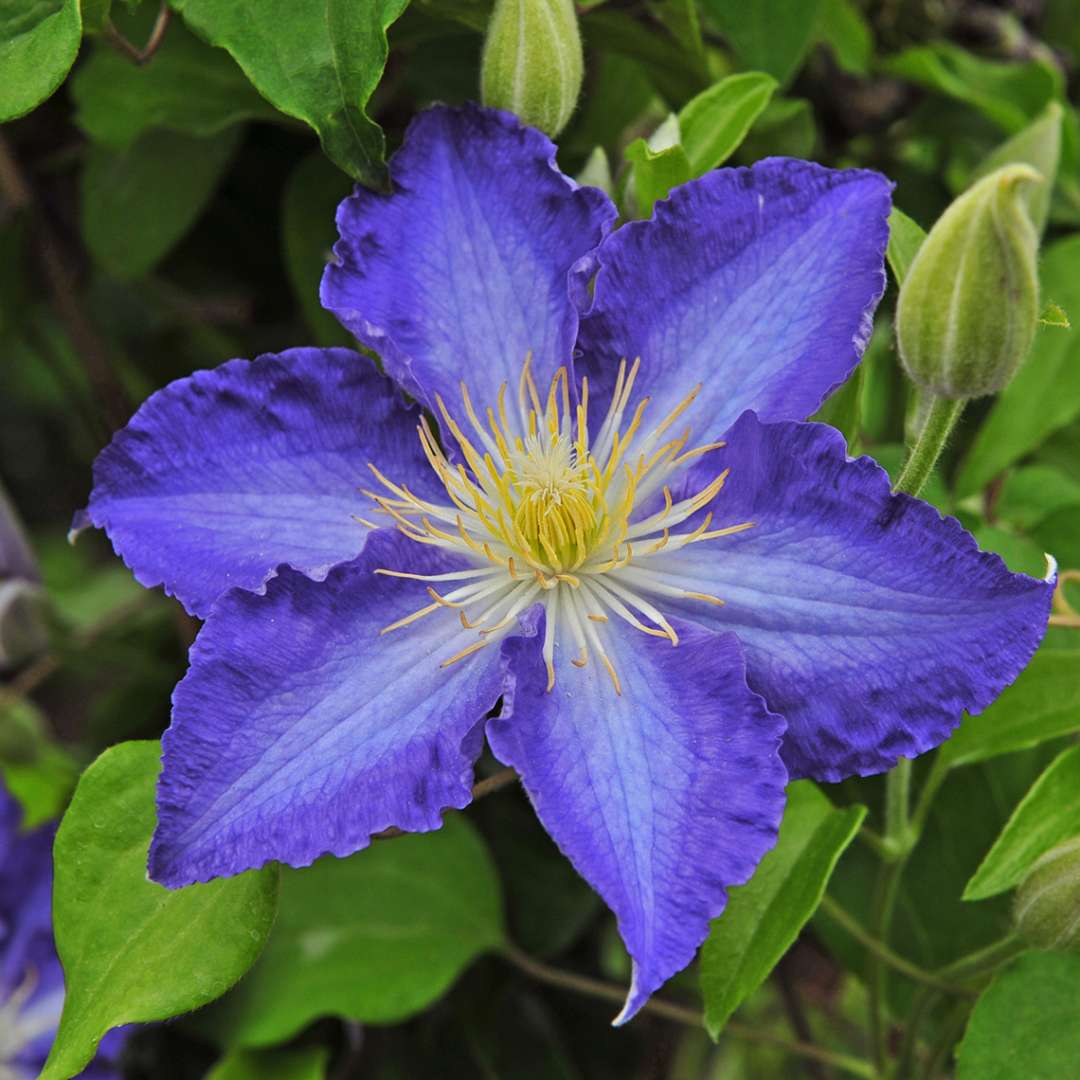 Клематис Стефан Франчак — выбор для истинных ценителей глубины цвета и благородных форм! Его бархатистые сине-фиолетовые цветы станут элегантным акцентом вашего сада.