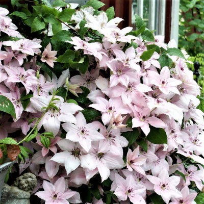Краткий обзор: Изысканный японский сорт с нежно-розовыми цветами, украшенными перламутровым переливом и волнистыми лепестками. Утонченный и обильноцветущий клематис для создания романтических акцентов в саду.