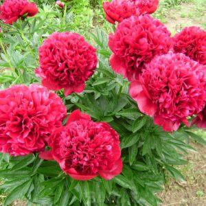Саженец травянистого пиона Корал Чарм вырастает в компактный куст высотой до 100 см.