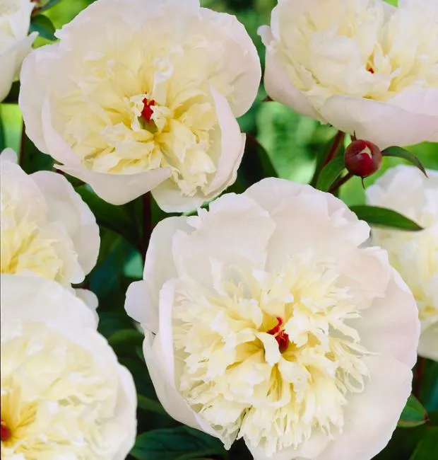 • Листва: Темно-зеленая, ажурная, типичная для молочноцветковых пионов. Декоративна весь сезон.