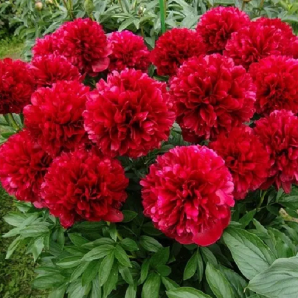 Этот сорт пиона привлекает внимание плотными прямостоячими стеблями и зелеными прочными листьями. Высота растения составляет примерно 75 см, делая его подходящим как для одиночных, так и для групповых посадок. Цветок среднего размера, диаметром 18 см, радует глаз насыщенно-красной окраской с ярким оттенком и шелковисто-бархатными лепестками бомбовидной формы.