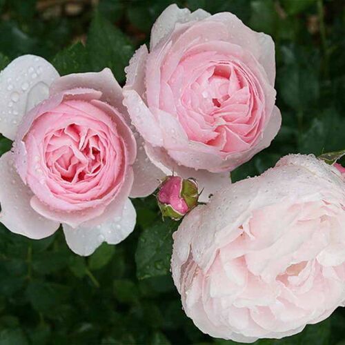 Цветки очаровательные, среднего размера, вазообразной формы, махровые, в центре мягкого чисто-розового тона, наружные лепестки изменяют окраску почти до белых. Аромат сильный, красивый, в нём доминируют фруктовый, медовый и гвоздичный, но чувствуется ещё и аромат мирры. Куст высотой и диаметром 120 см, на опоре может использоваться как маленькая плетистая роза, в этом случае её высота 180 см и более. Также великолепно смотрится на штамбе. Хорошо цветёт повторно.