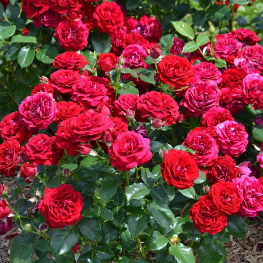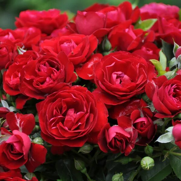 Компактная полиантовая роза, подходит для выращивания во всех садах. Махровые цветки бархатистого красного цвета почти полностью покрывают яркую здоровую листву. Высота в 60-70 см позволяет использовать её в бордюрах и массовых посадках. Цветение исключительно обильное, повторное с начала июня до конца сентября.