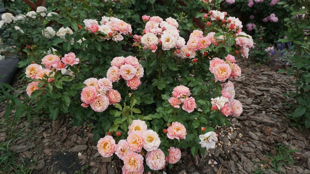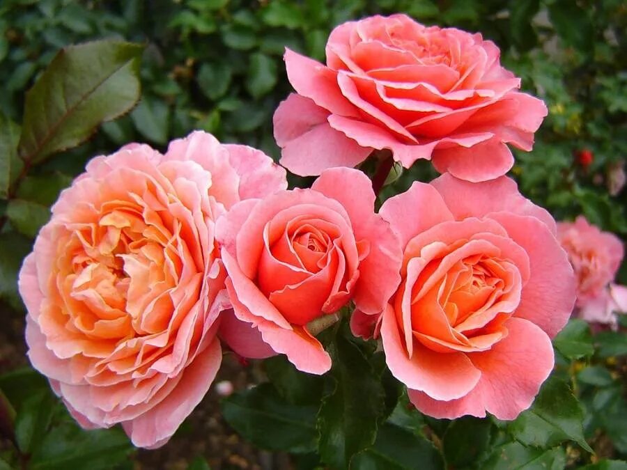 Цветки диаметром 6-8 см, махровые (30-35 лепестков), светло-оранжевые с бледно-розовой каймой, крупные, в соцветиях по 2-5 шт. Лепестки волнистые с заострёнными кончиками. Аромат лёгкий, пряный. Кусты высотой 60-70 см, шириной 120 см. Листва крупная, тёмно-зелёная, плотная, глянцевая. Цветение очень обильное и продолжительное, с июня до сентября. Устойчивость к болезням хорошая.