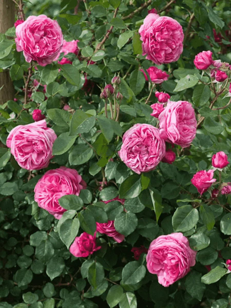 Эффектная плетистая роза. Кусты вырастают до 2,5 м в высоту и до 2 м в ширину. Цветки чашевидной формы густомахровые с резными лепестками. Диаметр цветка до 7-9 см. Сорт обладает насыщенным фруктовым ароматом с легкими нотками специй. Цветение повторное и обильное. Зона 5-6 (до -18…-23ºС).