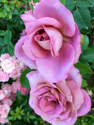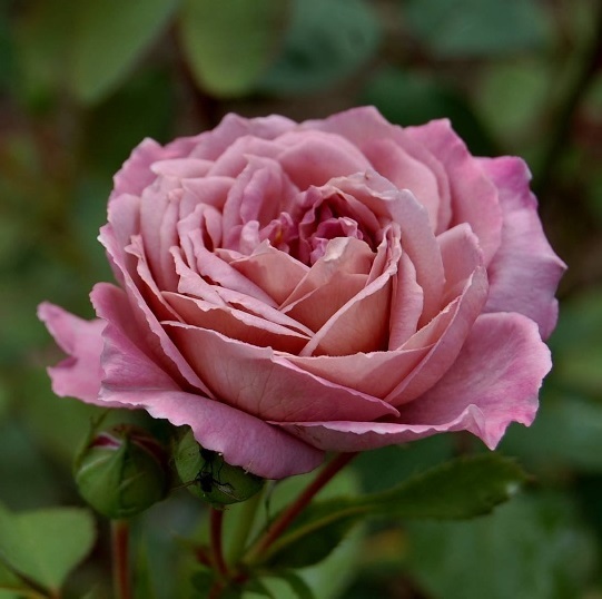 Это одна из самых зрелищных роз в саду, потому что она цветет часто одновременно цветами разного цвета. Лепестки розы окрашены лиловым или разных тонов фиолетовым, сиренево-серым, бежевым и розовато-лиловым, сиреневым, стареющим до рыжевато-коричневого и серебристо-серого. Цветы с мягким цветочным ароматом появляются из заостренных ярко-сиреневых бутонов. Средние и крупные, махровые, 26-40 лепестков чашевидной формы цветки, со слегка закрученным центром, собраны в небольшие соцветия. Цветение волнами с хорошим повтором в течение всего сезона. Куст пушистый, хорошо облиственный, высотой 90-120 см, шириной 60-90 см. Листва средняя, слегка блестящая, зеленая. Можно использовать для грядок и бордюров, контейнерной розы, срезанного цветка или сада.