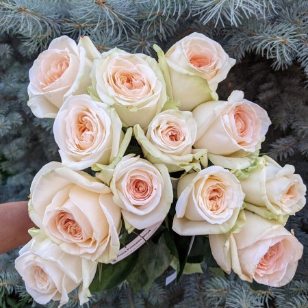 Японская роза с лепестками чистого светлого персика принцесса Майя раскрывается в розу среднего размера 10-12 см. Внешние лепестки изгибаются, а внутренние лепестки образуют сложные складки в классическом узоре садовой розы.