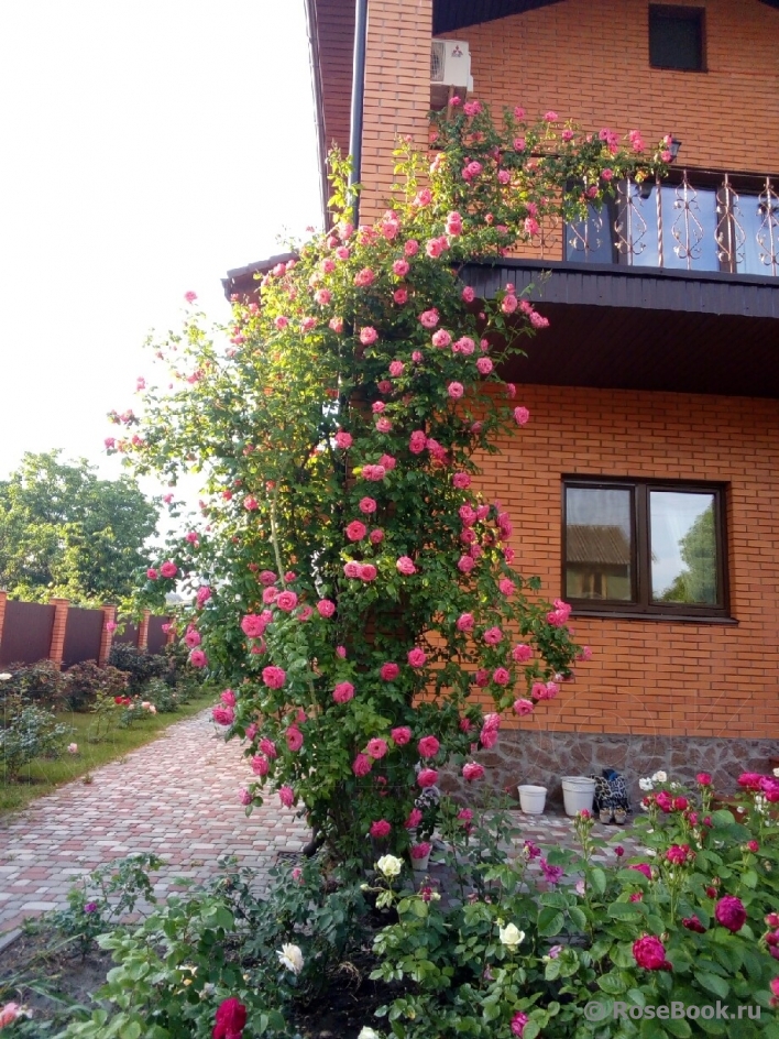 Цветки насыщенно-розовые, диаметром 8-10 см, махровые, по форме похожи на чайно-гибридные, устойчивые к дождю. Аромат нежный. Кусты сильные, пышные, высокоустойчивые к болезням.