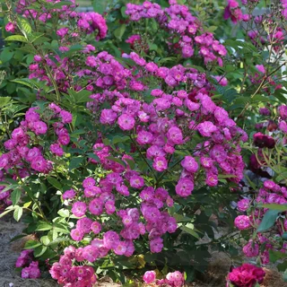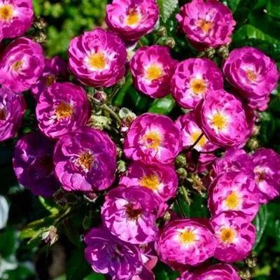 Этот гибрид розы мускусной цветками очень напоминает плетистую розу Vilchenblau. Они тоже полумахровые, лавандовые с белыми потеками. Однако у сорта Sibelius они собраны в кисти на пышном раскидистом кусте не больше 1 м высотой. Листья морщинистые, темно-зеленые.