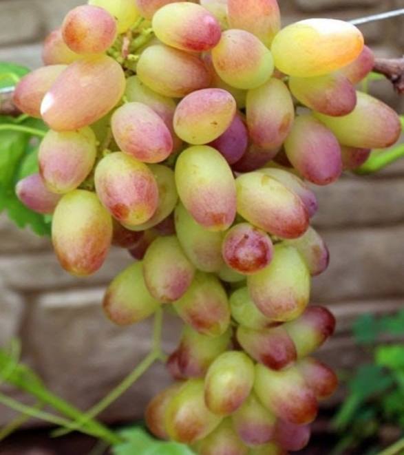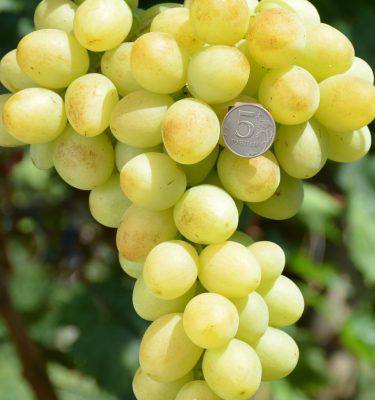 Сорт имеет ранний срок созревания, что делает его очень популярным у любителей виноградарства. Он достигает полной зрелости через 95-100 дней после начала цветения. Главная особенность сорта – его крупные ягоды цилиндрической формы. Размер ягод составляет 23×48 мм, а их вес – от 14 до 16 граммов. Цвет ягод белый с красным заостренным носиком. Ягоды обладают гармоничным и насыщенным вкусом. Его можно описать как сортовой. Кожица практически не замечается при употреблении.
